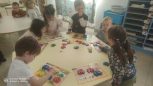 Nous exerçons notre motricité fine : « atelier  » couture » avec les animaux rigolos