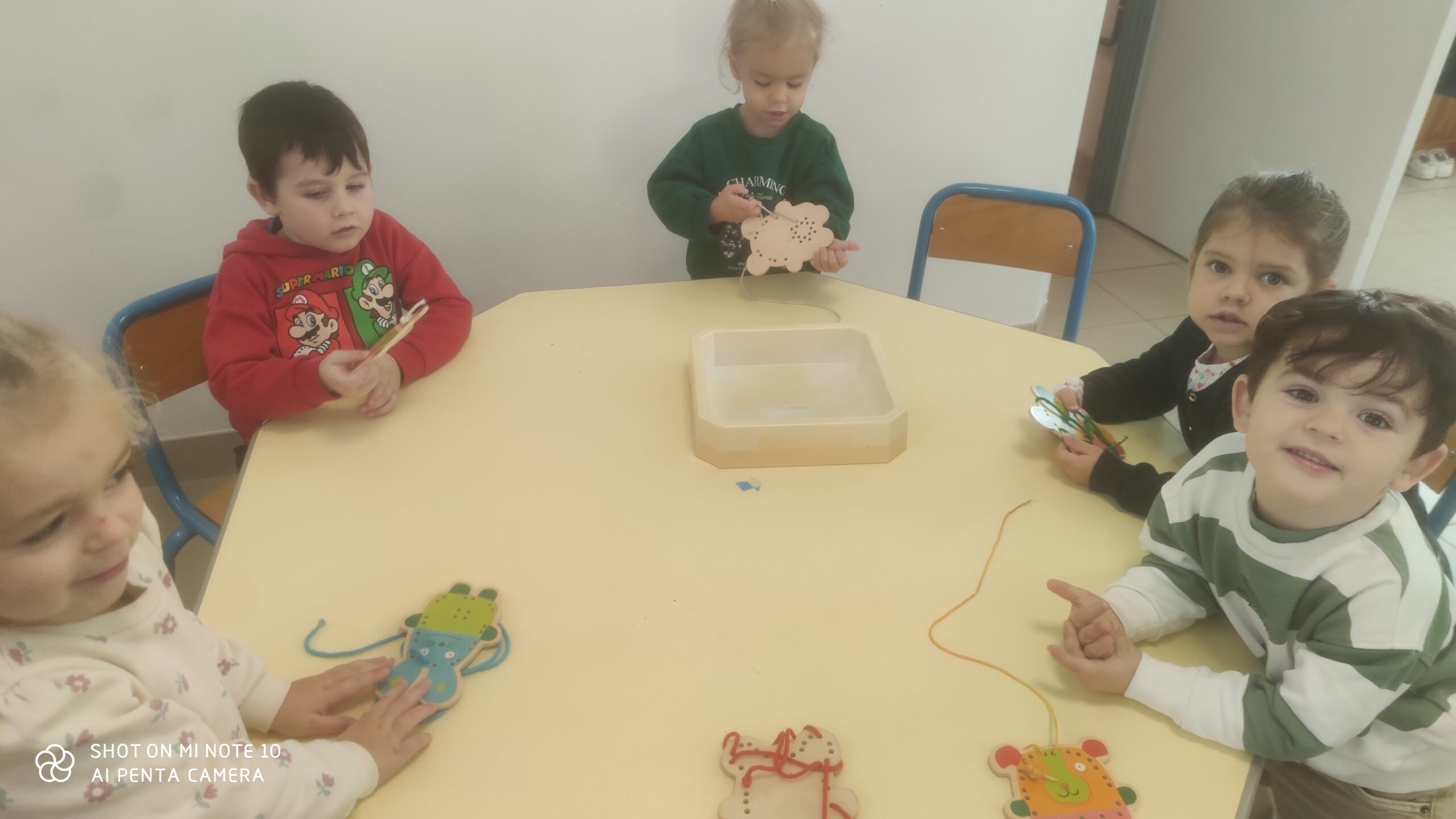 Nous exerçons notre motricité fine : « atelier  » couture » avec les animaux rigolos