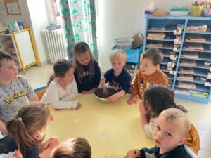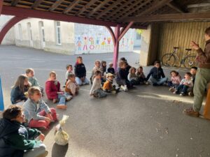 Les élèves de PS et CM ont accueilli Valérie de la com com de Nozay qui est venue nous expliquer en quoi consistait le compost.
