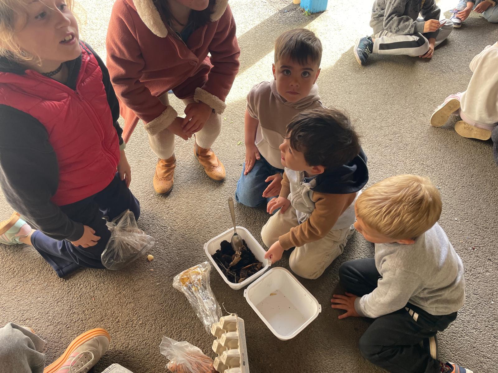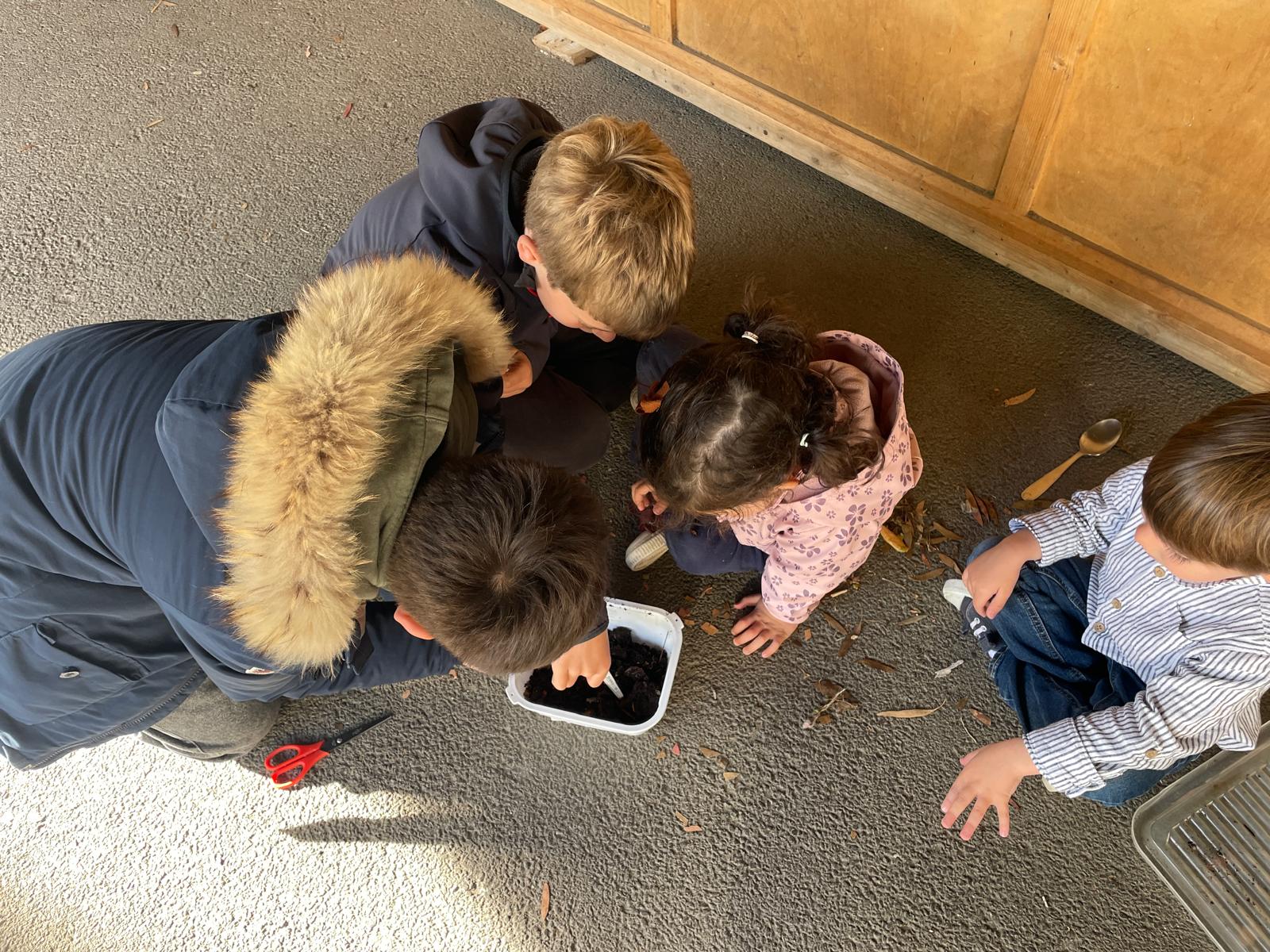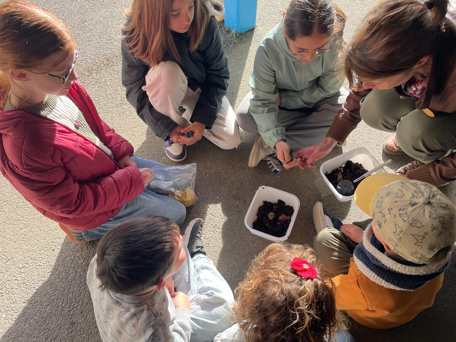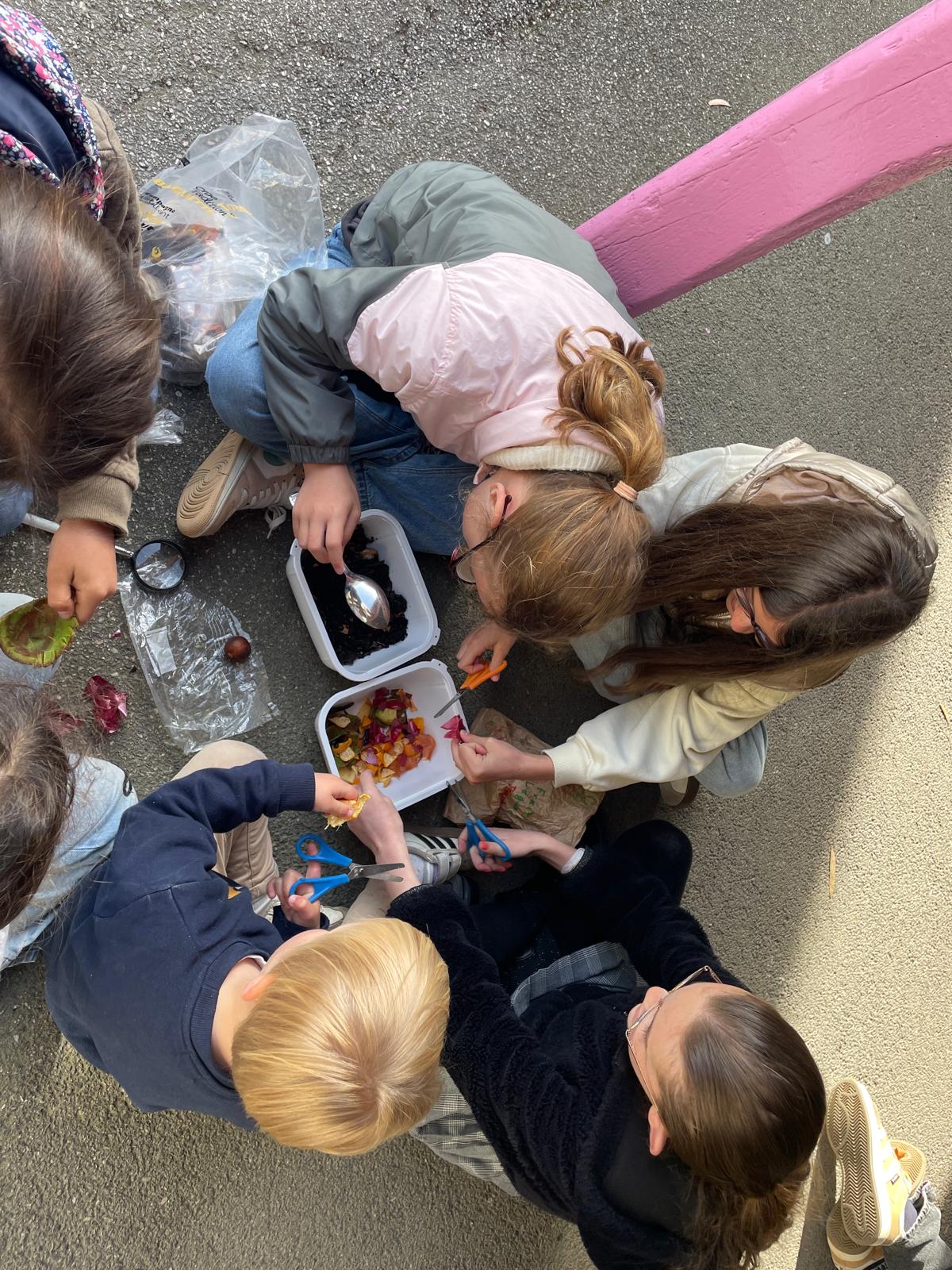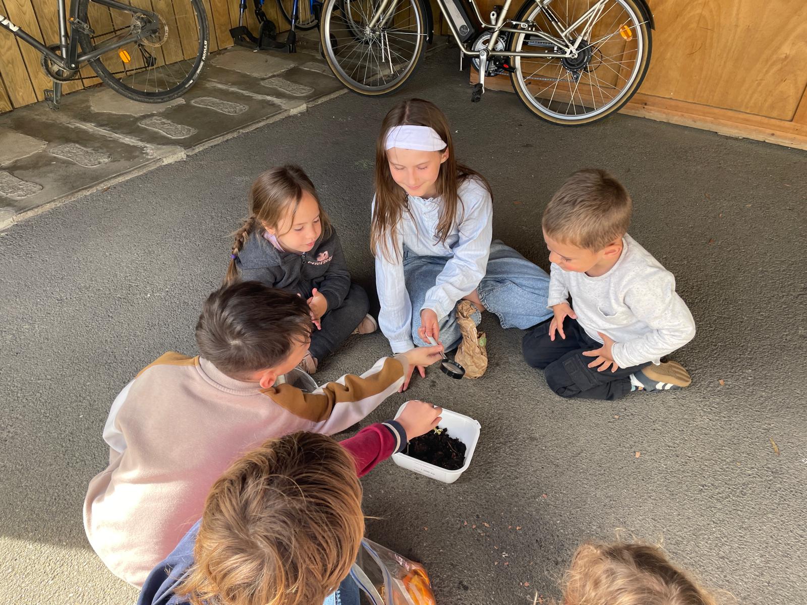 Les enfants ont donc découper les épluchures et observer les petites bêtes dans le compost!