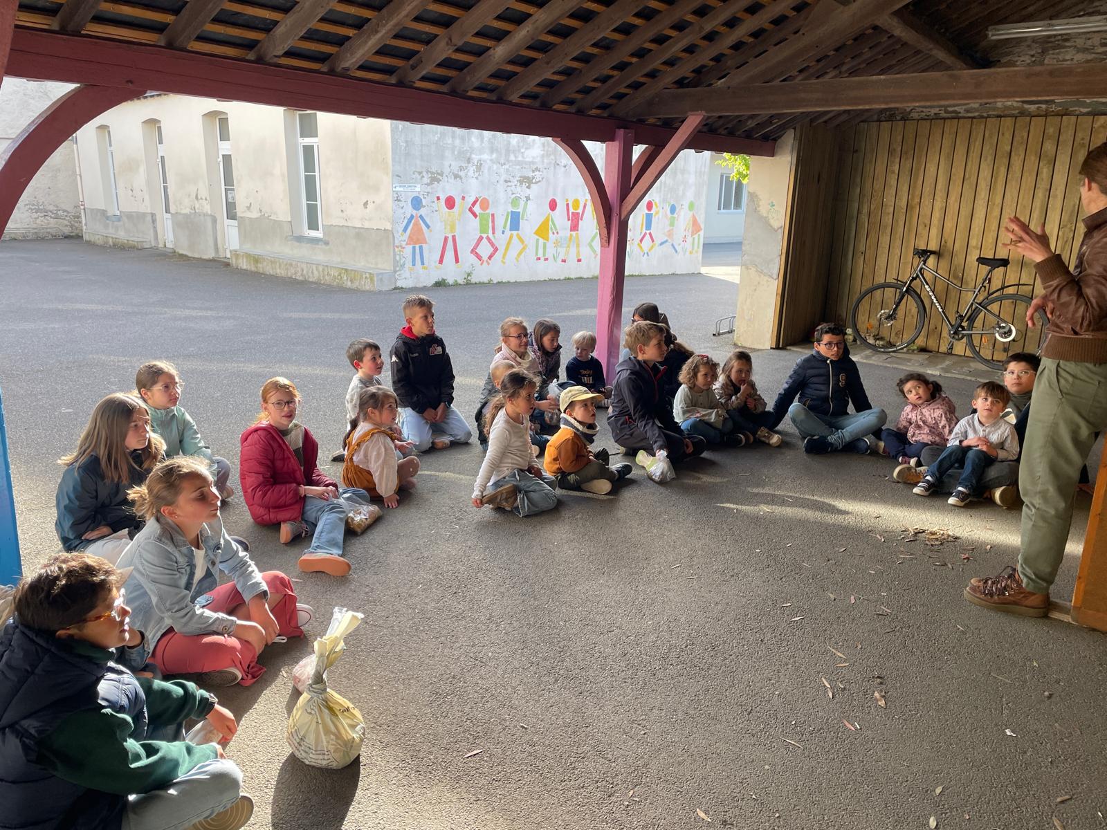 Les élèves de PS et CM ont accueilli Valérie de la com com de Nozay qui est venue nous expliquer en quoi consistait le compost.