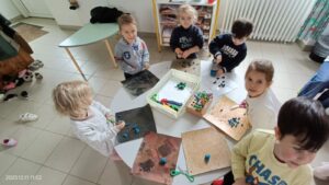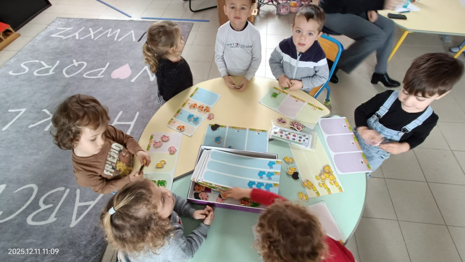 Cet atelier permet aux enfants de développer leurs compétences en mathématiques tout en s’amusant. Grâce à la manipulation des jetons magnétiques sur les planches, ils ont pu découvrir les nombres de 1 à 5 à travers différentes représentations telles que les collections témoins, les doigts de la main et les constellations du dé.