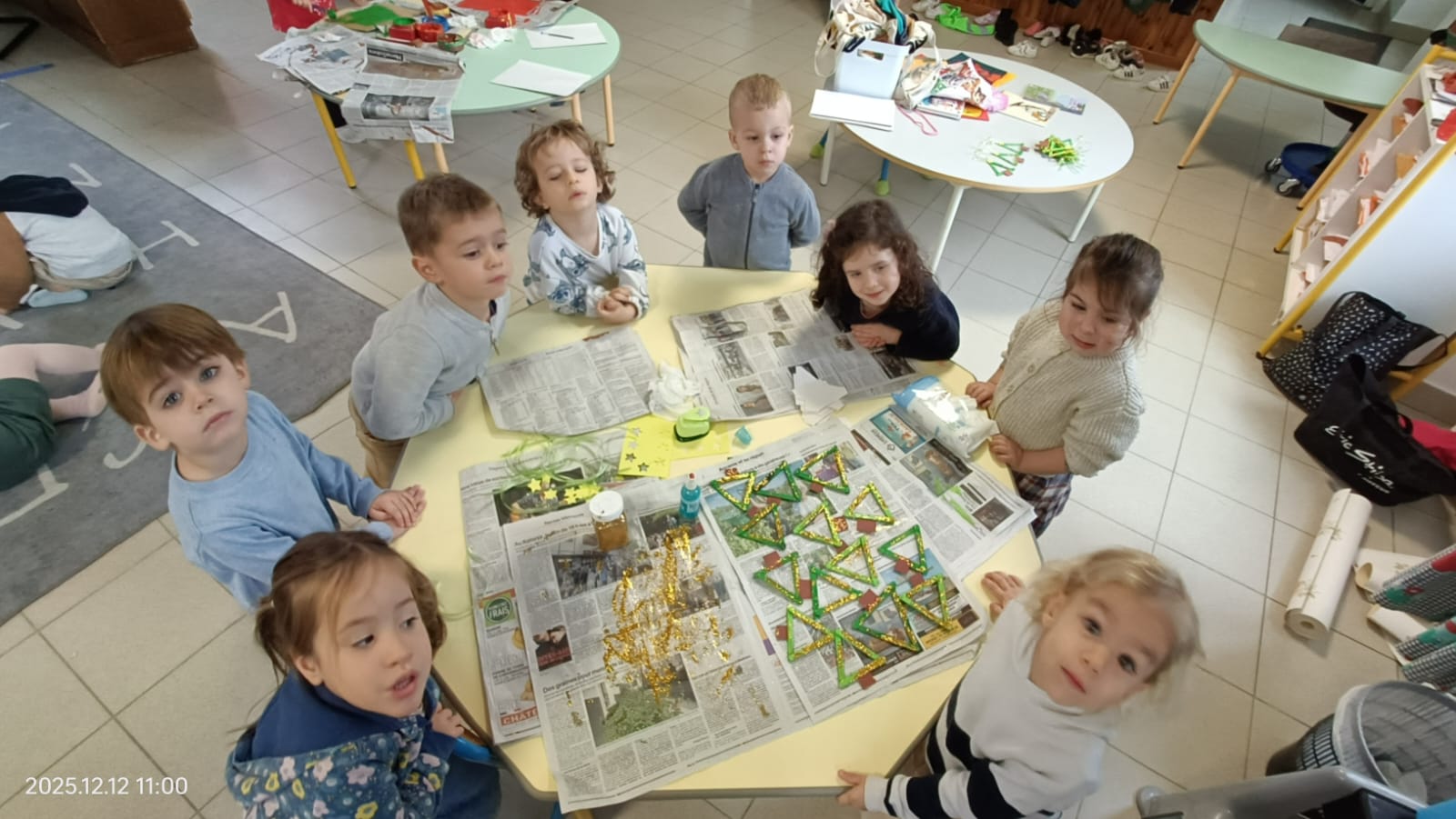 Les enfants ont décoré le sapin de Noël et ils ont essayé de reconnaître leur étiquette prénom sans la photo